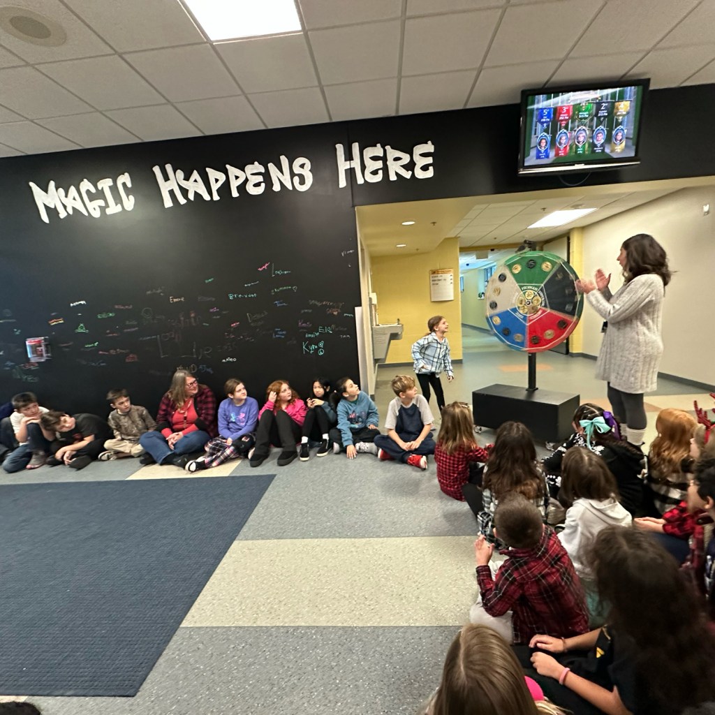Picture this: five houses—Michigan, Erie, Huron, Superior, and Ontario—all cheering each other on as students spin a prize wheel to earn points for their house. The excitement was contagious, and I couldn’t help but chant, “Spin that wheel!” right alongside the students. I then awarded, with fellow Board of Education Trustee Erica Moon Mohr, the coveted Spirit Stick to the month’s winning house, the cheers echoing through the gymnasium.