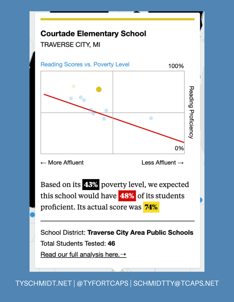 At Courtade, 74% of students are proficient readers—well above what national models would predict.